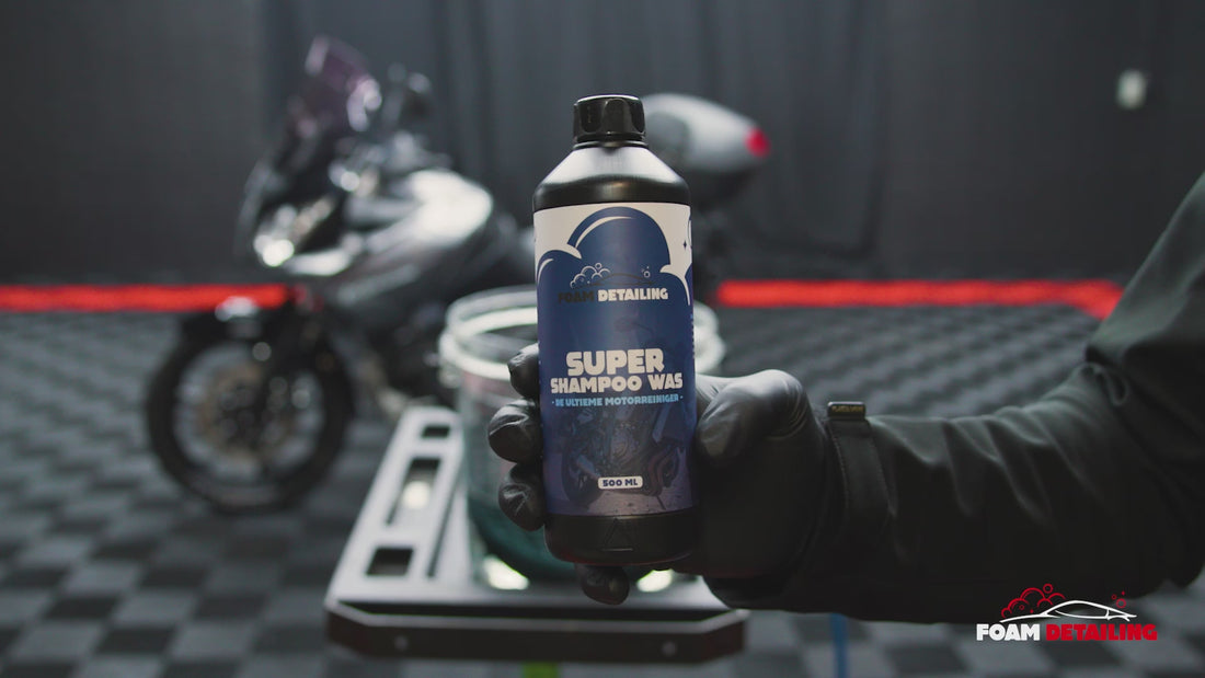 Ontdek onze Super Shampoo Was, de ideale keuze voor het reinigen van je motor met een extra beschermende touch. Deze geavanceerde shampoo is verrijkt met een speciale waslaag, die een schitterend glanzend resultaat achterlaat na het afspoelen. In tegenstelling tot traditionele shampoos, zorgt Super Shampoo Was voor een doeltreffende reiniging en een duurzame beschermende laag in één.